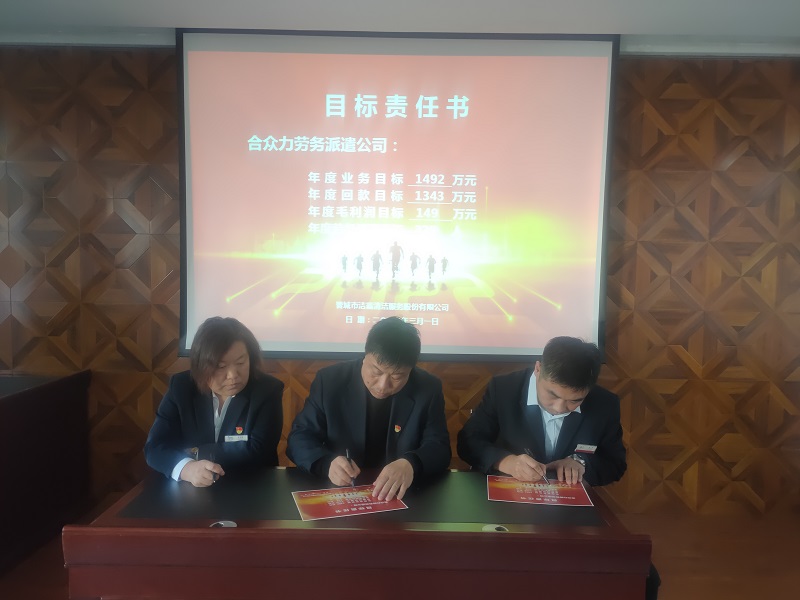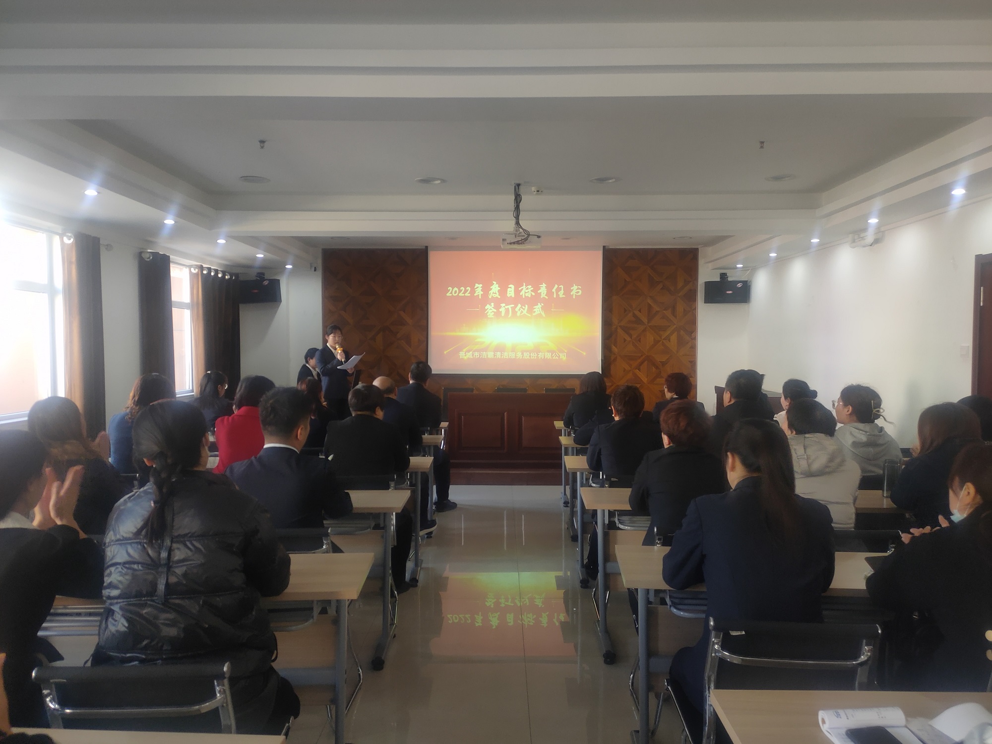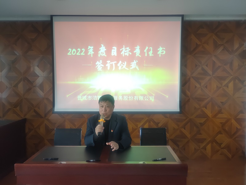 為落實公司2022年工作會議精神,進一步壓實責任,確保年度工作目標的順利完成, 3月1日下午,晉城市潔霸清潔服務(wù)股份有限公司在活動中心組織召開2022年度目標責任書簽訂會議。公司黨支部書記、總經(jīng)理程晉軍,副總經(jīng)理張永智、史志霞,經(jīng)理助理,各子公司、分公司、部門經(jīng)理及項目負責人、主管等參加會議。