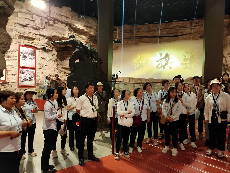 走進(jìn)紅旗渠紀(jì)念館,大家跟隨講解員的腳步,在千年旱魔,世代抗?fàn)帲患t旗引領(lǐng),創(chuàng)造奇跡;英雄人民,太行豐碑;山河巨變,實現(xiàn)夢想;繼往開來,精神永恒五個部分逐一駐足學(xué)習(xí),通過一件件珍貴的物品,一幅幅生動的圖片、一幀幀震撼的畫面、一個個感人的故事,讓大家身臨其境感受到林州人民建造人工天河時不畏艱險,頑強拼搏,緊靠一錘一鏟削平1250座山頭、鑿?fù)?11個隧道、架設(shè)151個渡槽的恢弘場景。在場的各位都深深地被“自力更生、艱苦創(chuàng)業(yè)、團(tuán)結(jié)協(xié)作、無私奉獻(xiàn)”的紅旗渠精神所感動,切實感受到中華民族勤勞堅韌的優(yōu)良傳統(tǒng),領(lǐng)悟社會主義是干出來的,新時代是奮斗出來的。