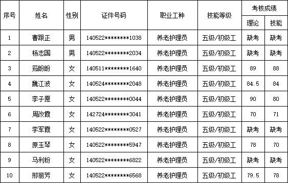 山西潔霸清潔服務(wù)集團(tuán)股份有限公司職業(yè)技能等級(jí)認(rèn)定中心現(xiàn)將2026年4月17日認(rèn)定人員成績公示如下: